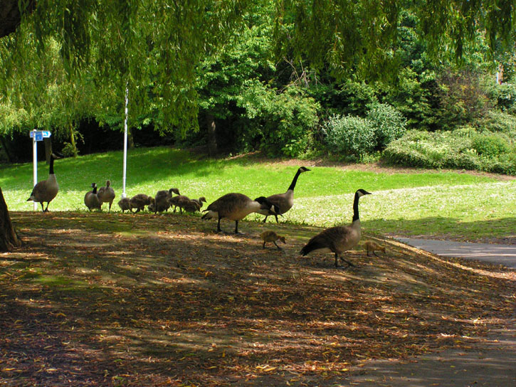 Canada Goose mother and chicks, next to Swimming Pool lake